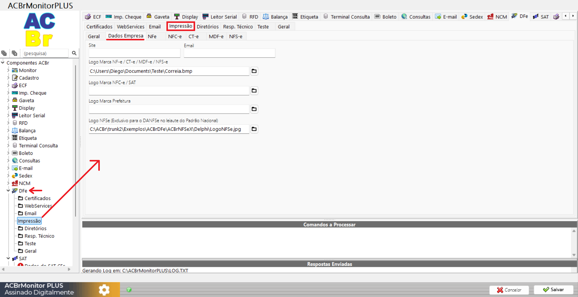 Logo NFSe: Define o Path para o LogoTipo da NFSe, utilizado no novo leiaute do DANFSe Padrão Nacional (Veja mais AQUI).